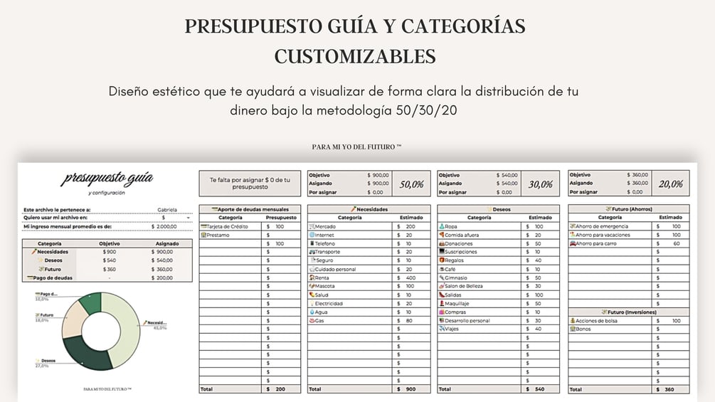 - Personalizable: Viene con categorías por defecto que puedes adaptar a tu estilo de vida, ¿sabes que es lo mejor? solo debes escribirlas 1 vez y aparecerá todo los meses!.